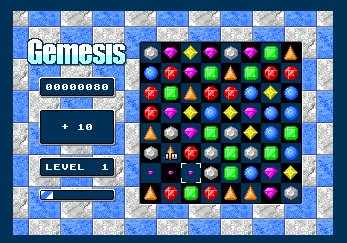 Gemesis is a Bejeweled clone for the Sega Mega Drive / Genesis.